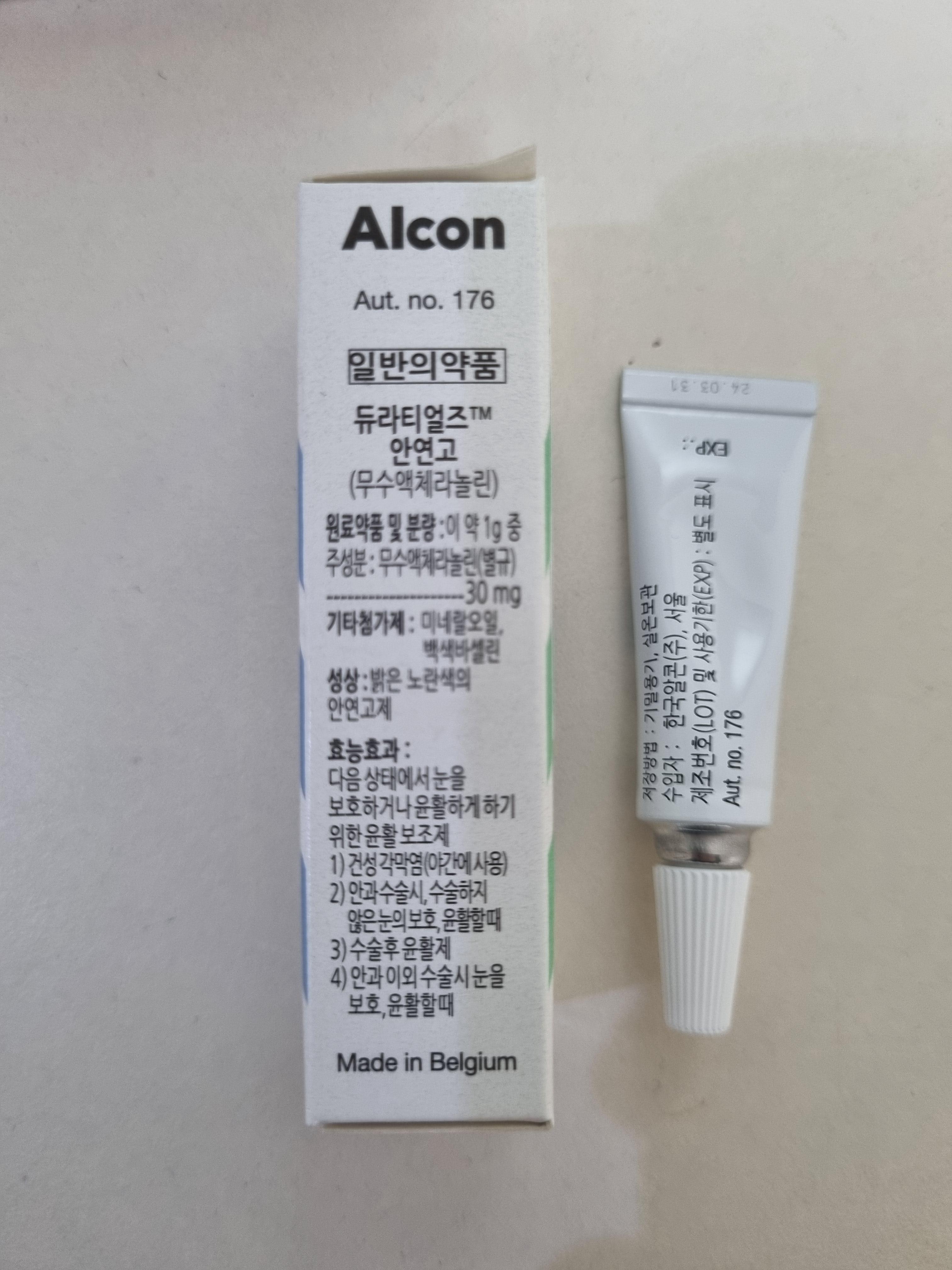 갑상선 안병증으로 안과에서 처방받은 듀라티얼즈 안연고. 매일 취침전 1일 1회 아래 눈커플 안쪽에 바르는 연고다. 일반 액체형 인공눈물보다 점성이 높아서 잘때 눈을 살짝 뜨고 잘 염려가 있어 눈을 보호하거나 눈을 부드럽게 하는 윤활제 역할을 한다.