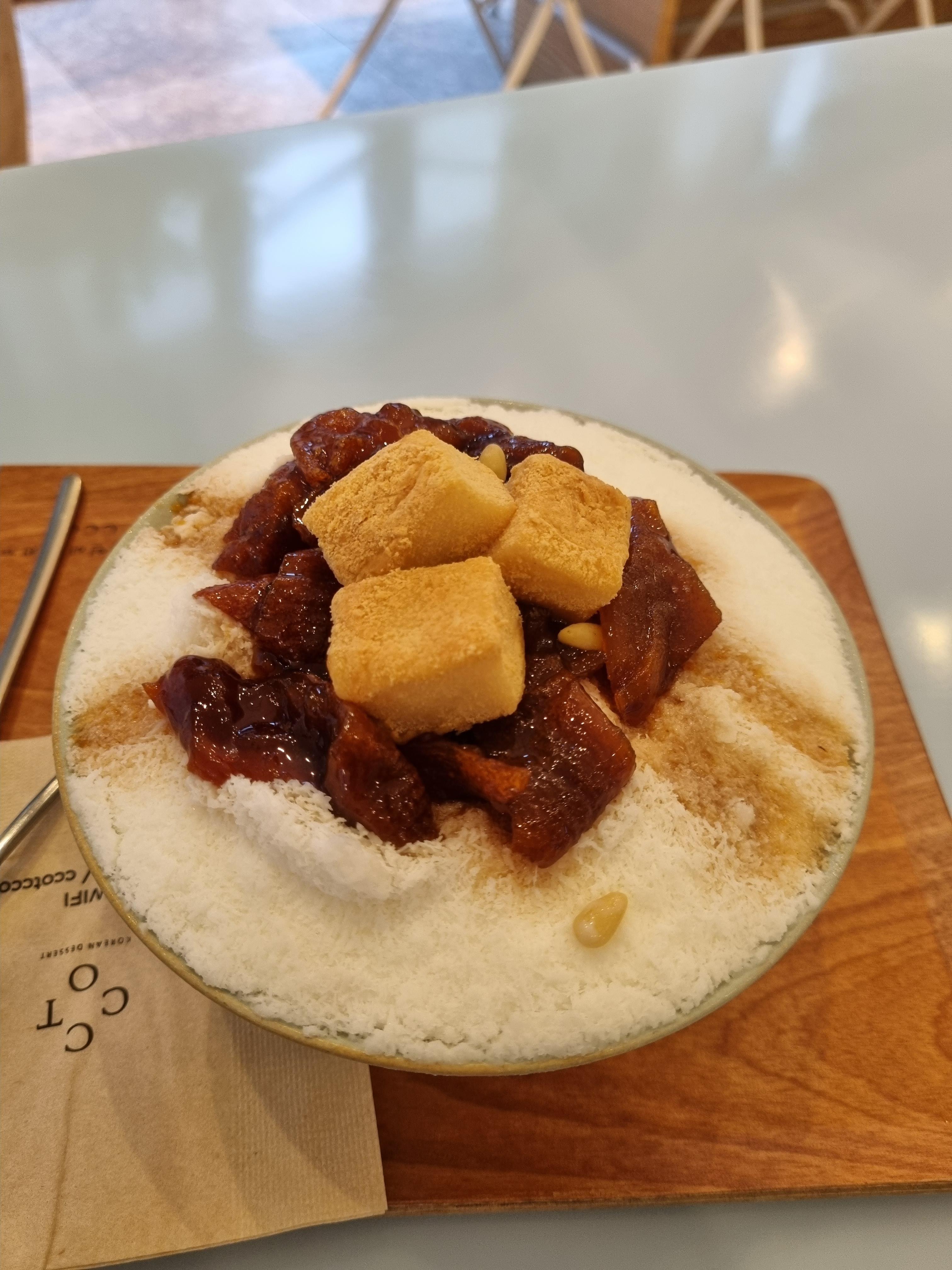 얼음이 아주 부드럽게 갈려서 매장 내가 엄청 시원했는데도 금방 녹는 기분이 들었다. 그만큼 얼음이 사르륵 녹는다. 전통적인 맛을 구현해내서 수정과 맛이 나는 것도 정말 독특했다. 여러 빙수 다 먹어봤지만 수정과 맛은 처음이었다.