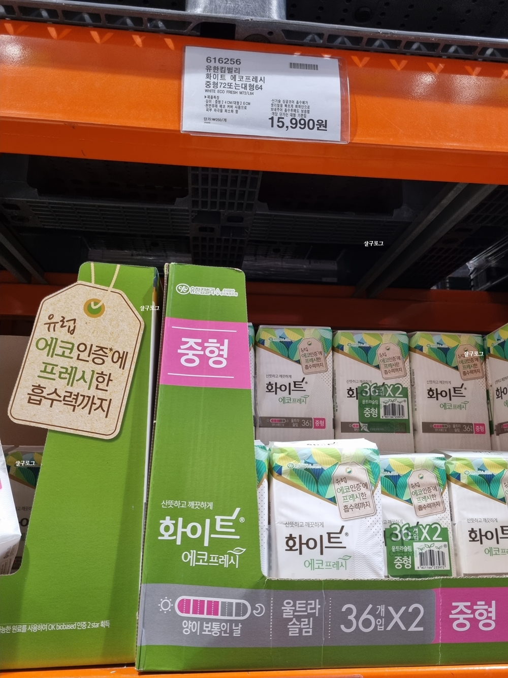 코스트코 여성용품 제품 판매 리스트 가격 콜만 라네이처 화이트 좋은느낌 팬티라이너 입는 오버나이트 생리대