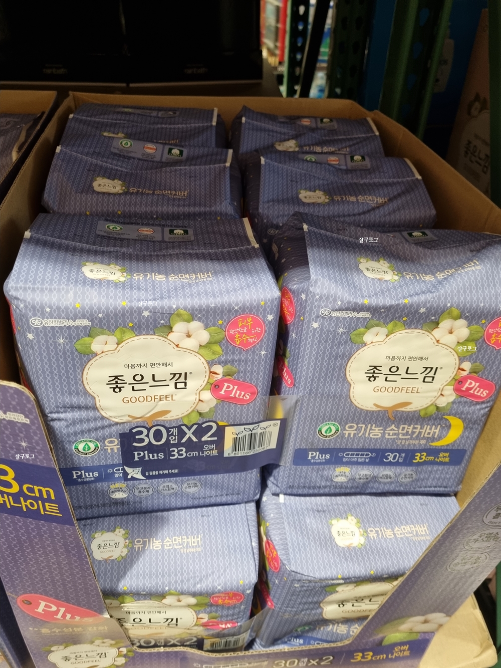 유기농순면라인 팬티라이너도 있고, 소형, 중형, 대형, 오버나이트까지 다 판매하는 중.