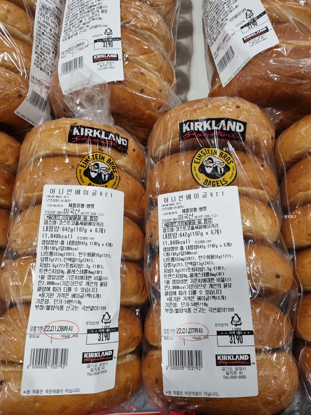 코스트코 가성비템. 어니언 베이글. 베이글도 스테디 셀러다. 장바구니에 엄청 많이 들어가 있는 제품.