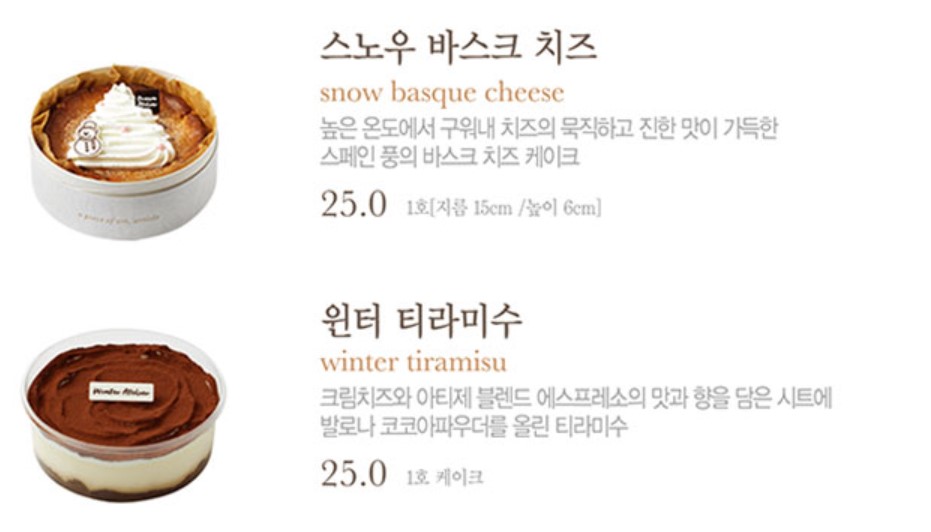 스노우 바스크 치즈 25000원 / 윈터 티라미수 25000원