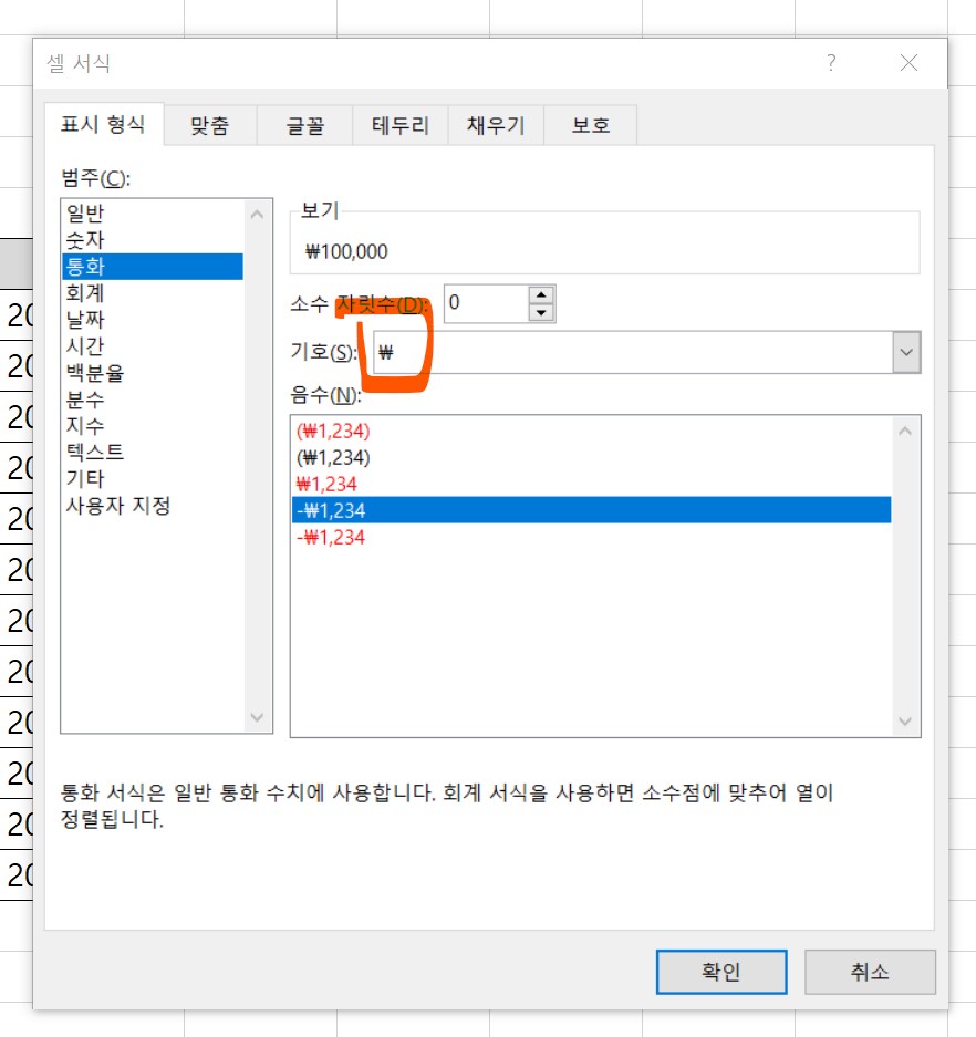 방법1. 표시형식 통화단위 아이콘 사용하는 방법