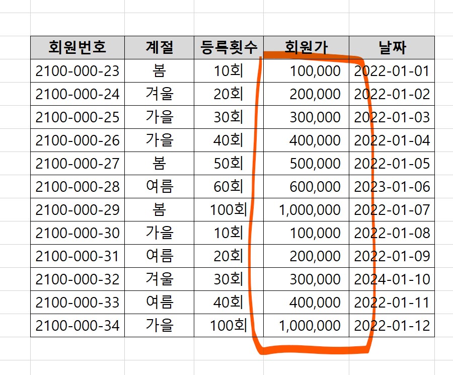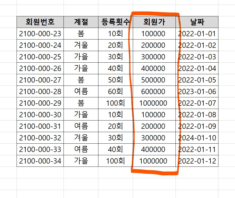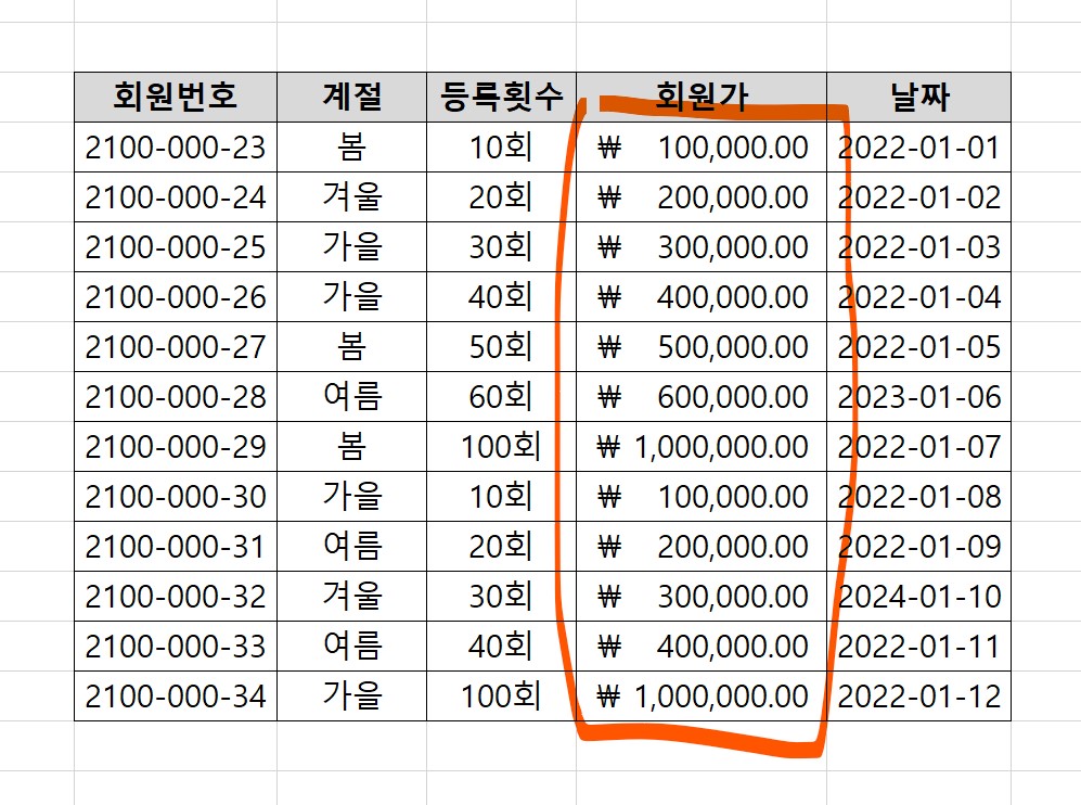회원가 열에 퍼센트를 적용해보려고 한다.