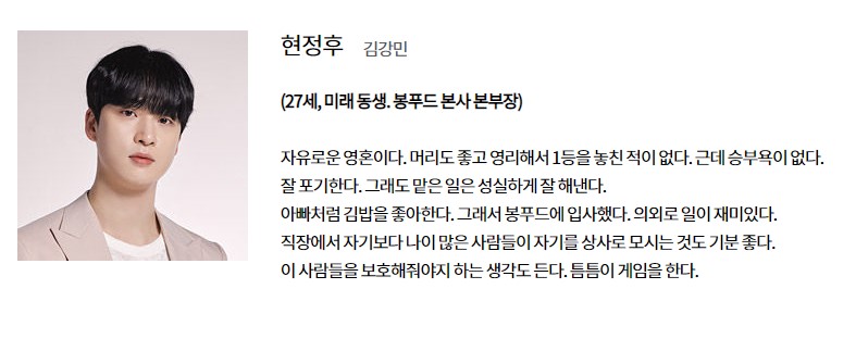 미래 동생은 좀 무뚝뚝한 편인데, 아버지의 회사 봉푸드에 다니고 있다.