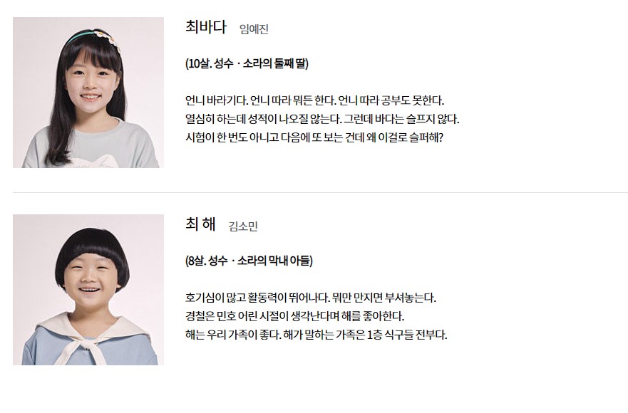 통통 튀는 막내와, 진중한 첫째. 서로 다른 모습을 보여주는 세대간 이야기가 흥미롭게 전개된다.