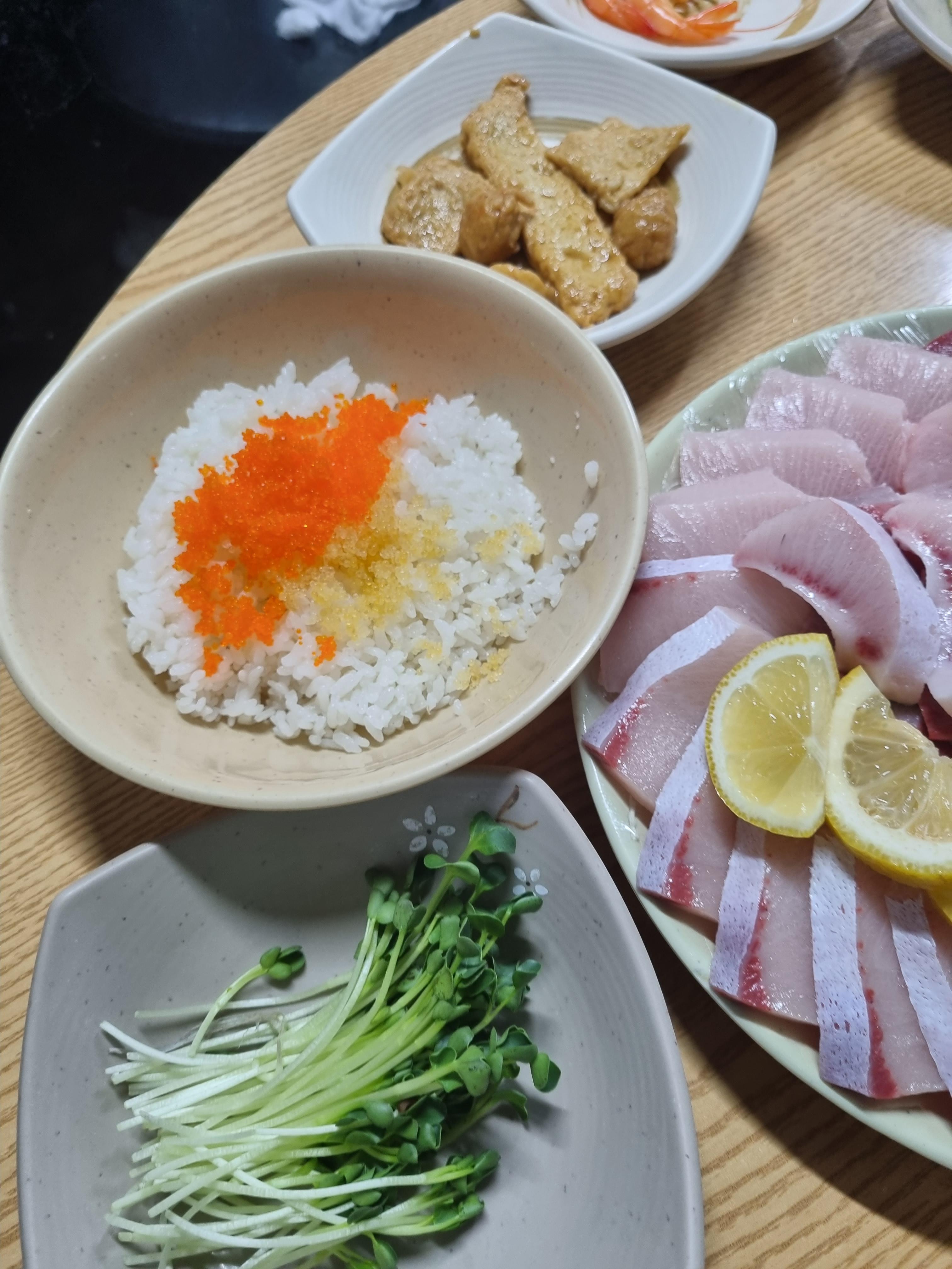 아무튼 여긴 대방어 맛집이다. 아주 적당한 두께로 썰어나온다. 회는 회 한점의 굵기도 식감에 많은 영향을 끼치는데 여기는 진짜 한입 먹자마자 탄성이 나온긴한다. 맛있긴해.