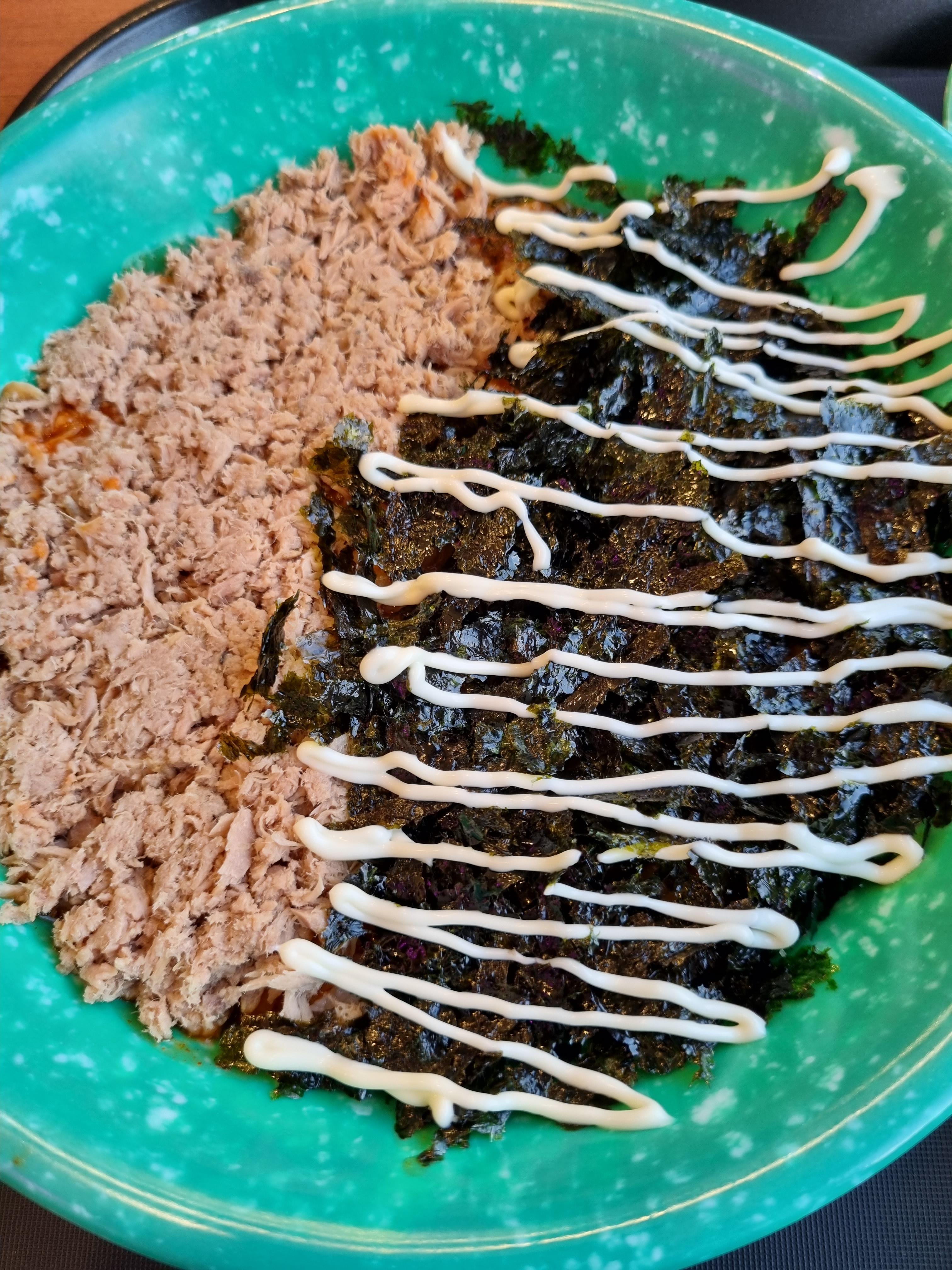 밥 한그릇인데 3500원이라니. 저렴하다. 국물비빔밥이 뭔가 싶었는데 알고보니, 떡볶이 국물 비빔밥! 밥 위에 떡볶이 국물을 뿌리고, 그 위에 참치와 김, 마요네즈를 올렸다. 참치가 안올려진 일반 국물비빔밥은 2500원이라 가성비가 더 좋다. 떡볶이 국물과 밥을 비벼먹으니 즉석떡볶이를 먹고 비벼먹는 볶음밥 같은 맛이었다. 비록 볶음밥처럼 꼬들하진 않고 촉촉하지만. 그래도 배고플때 이만한게 있을까 싶다.