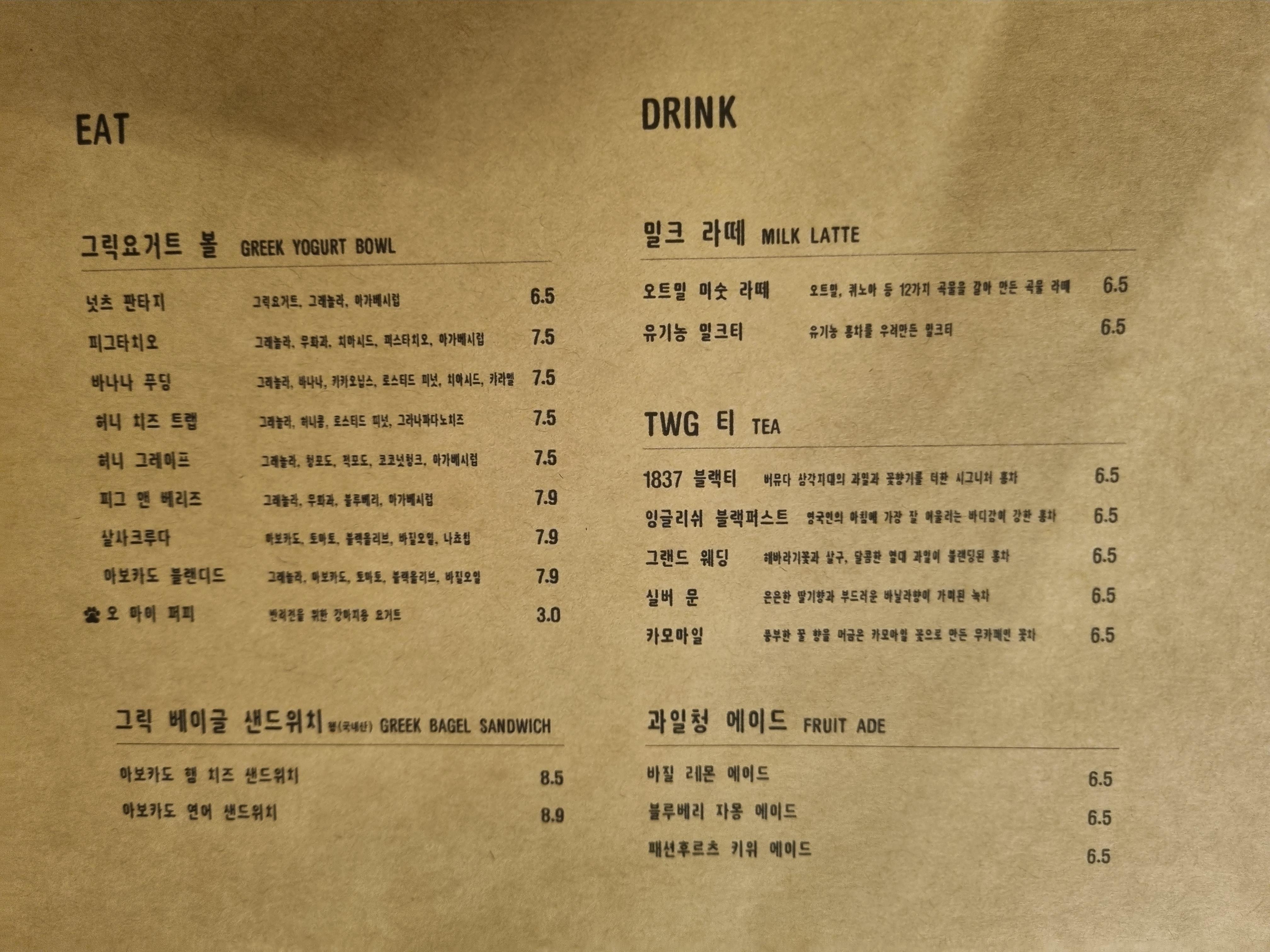 요거트를 주로 판매하는 카페다. 그만큼 요거트볼의 종류가 다양하고, 요서트를 바탕으로 만든 베이글 샌드위치도 있어서 가볍게 배를 채울 수 있다.