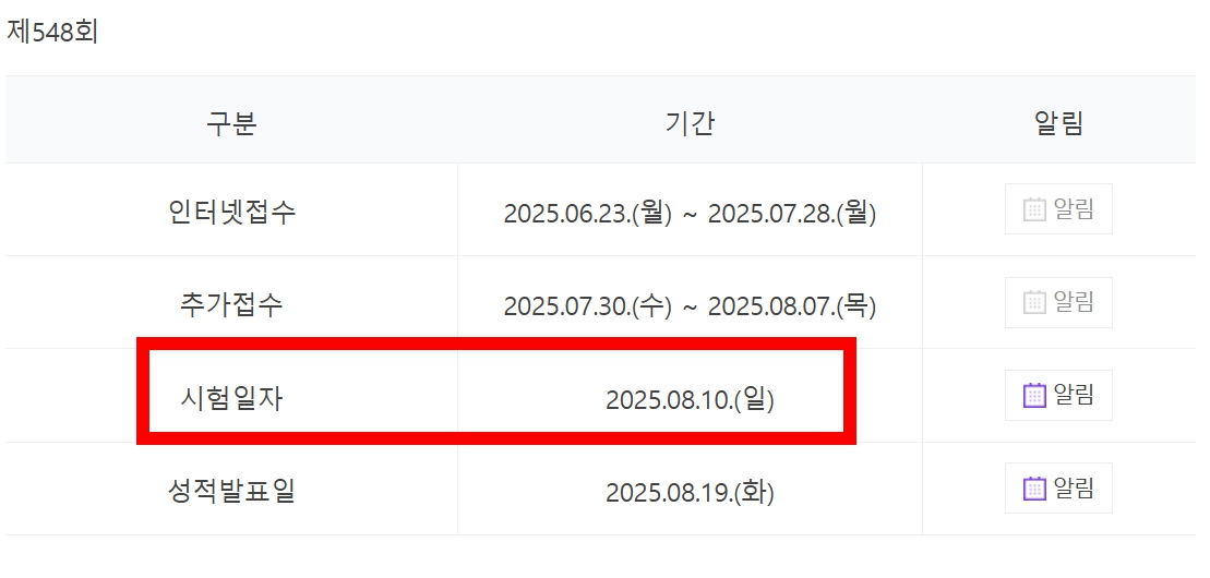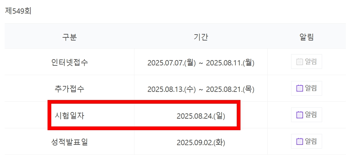 📍시험 일자 : 2025년 8월 10일 (일요일)