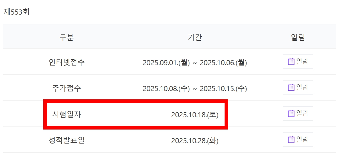 📍시험 일자 : 2025년 10월 18일 (일요일)