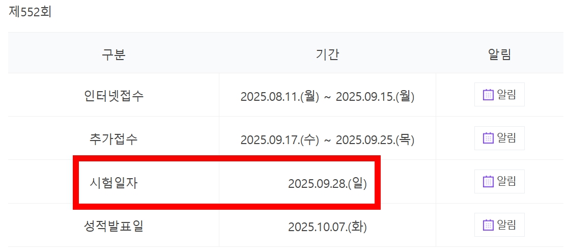 📍시험 일자 : 2025년 9월 28일 (일요일)