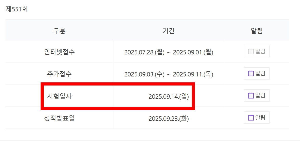 📍시험 일자 : 2025년 9월 14일 (일요일)