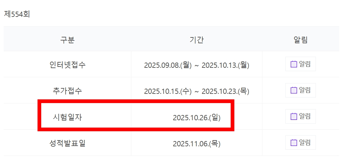 📍시험 일자 : 2025년 10월 26일 (일요일)
