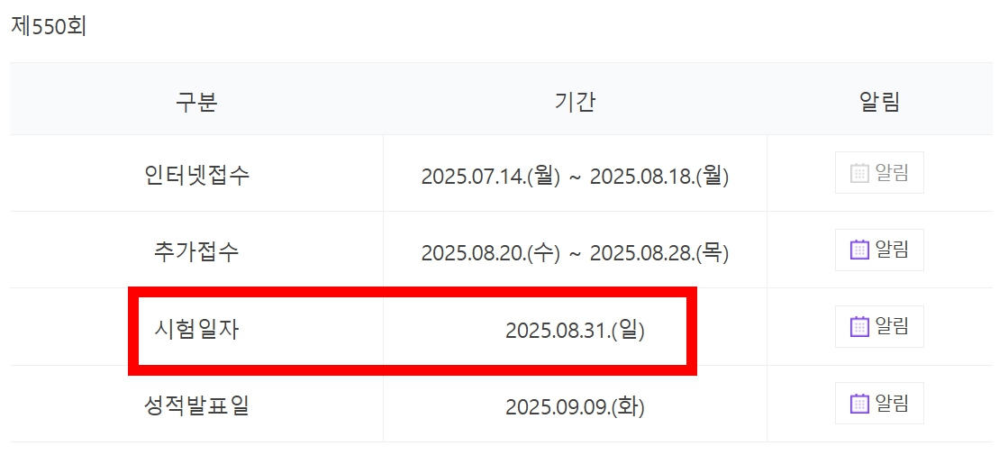 📍시험 일자 : 2025년 8월 31일 (일요일)