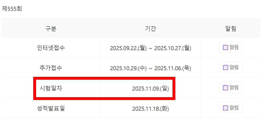 📍시험 일자 : 2025년 11월 9일 (일요일)