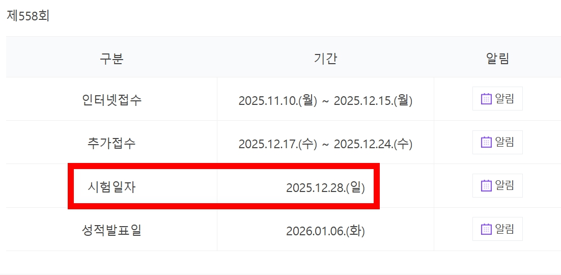 📍시험 일자 : 2025년 12월 28일 (일요일)