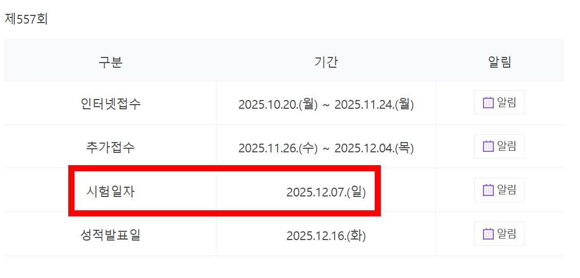 📍시험 일자 : 2025년 12월 7일 (일요일)