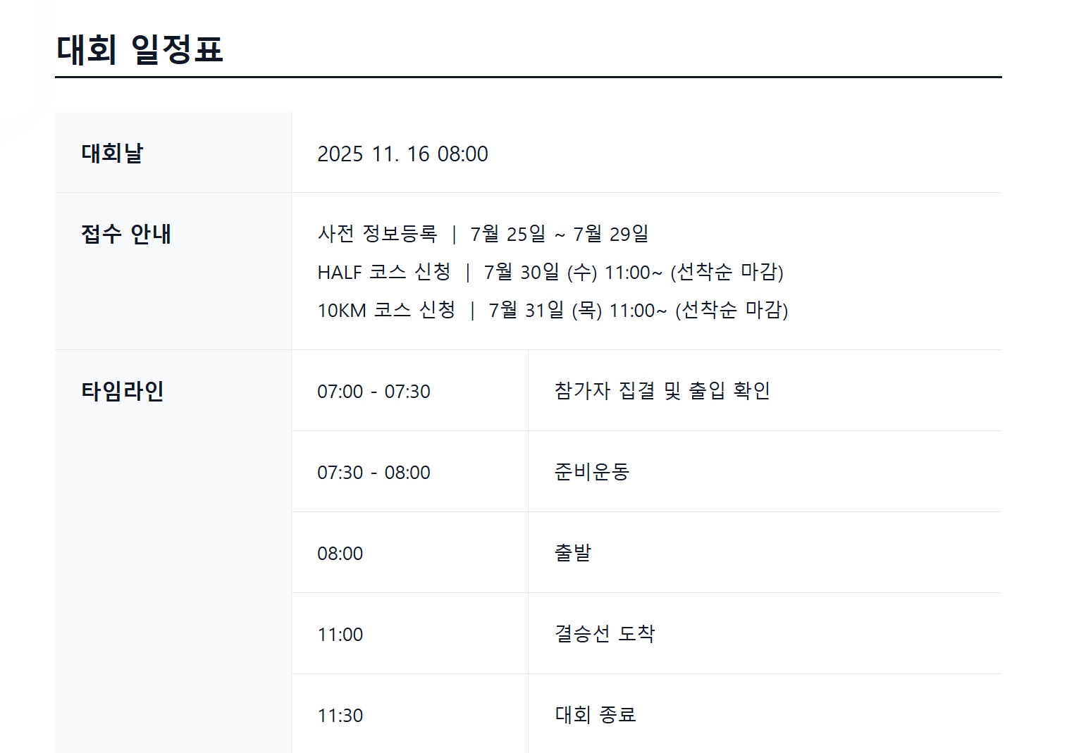 이미 모집이 마감된 상태이며 추가로 하프 700명, 10km 300명을 모집할 예정입니다.