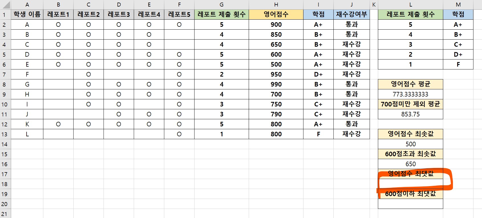 1. 영어점수 최댓값을 구할 셀을 클릭한다.