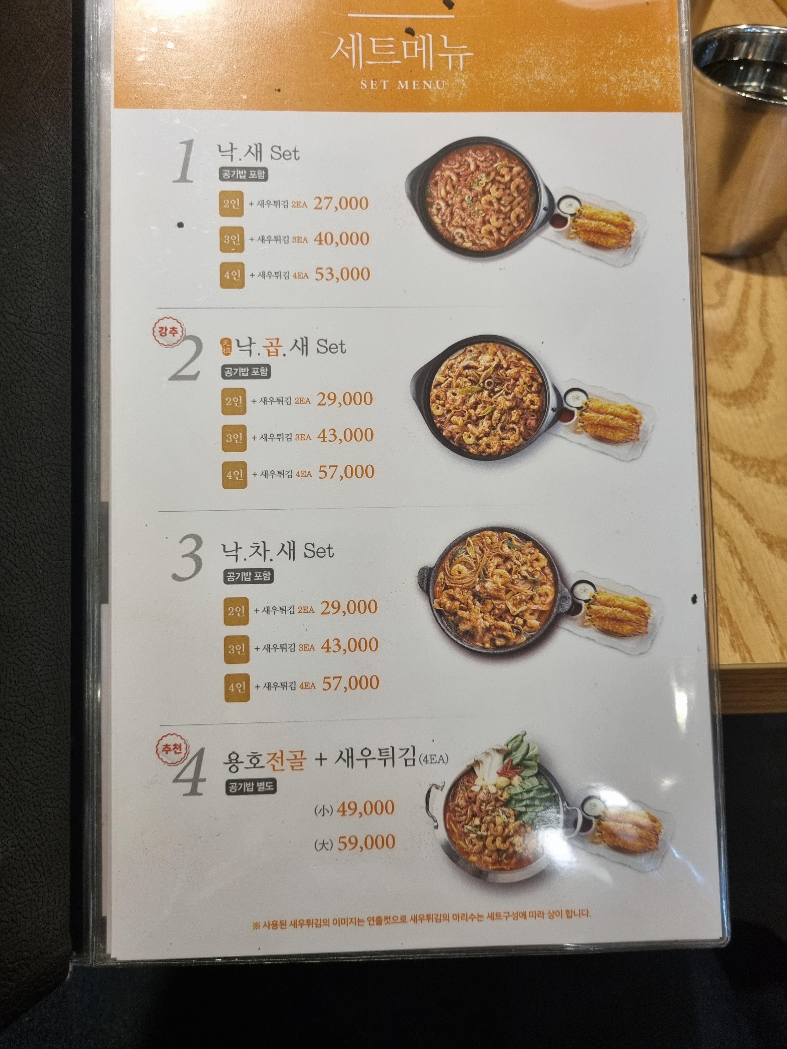 낙곱새 세트는 2인에 29000원 3인에 43000원 4인에 57000원이다.