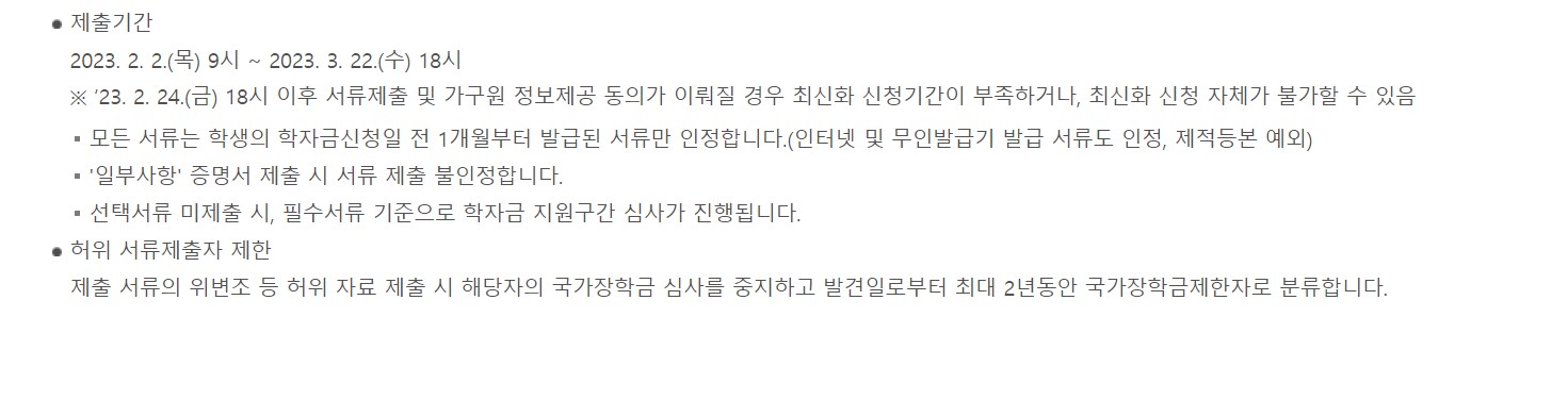 * 국가 장학금 신청 기간