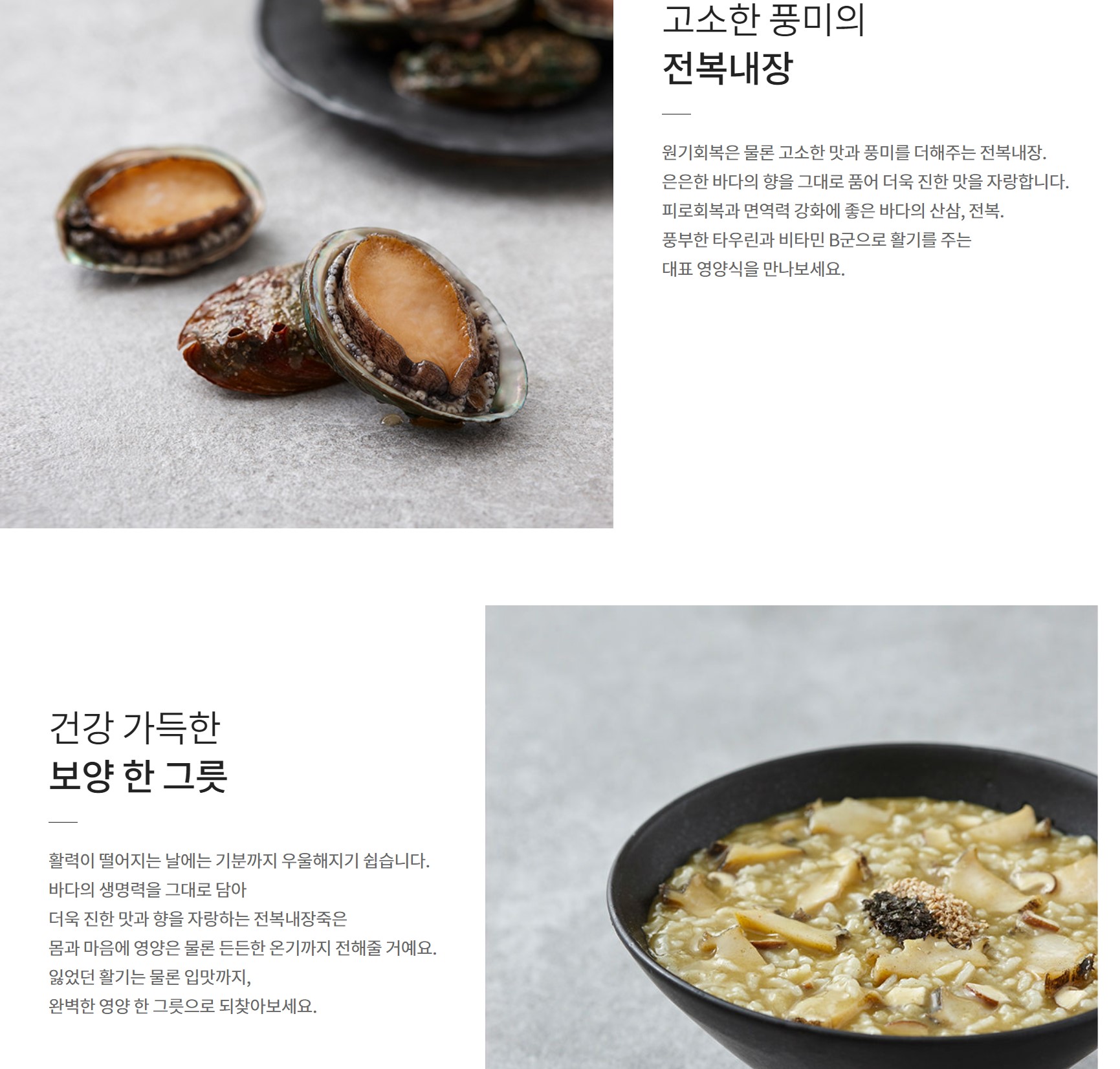전복은 원기회복에 좋다고 한다. 이때 정말 많이 아파서 여러 죽을 다양하게 먹어봤던 것 같다. 기본적인 전복죽도 좋지만, 고소한 풍미와 맛을 더해준다니 전복내장죽도 한번 도전해보자.
