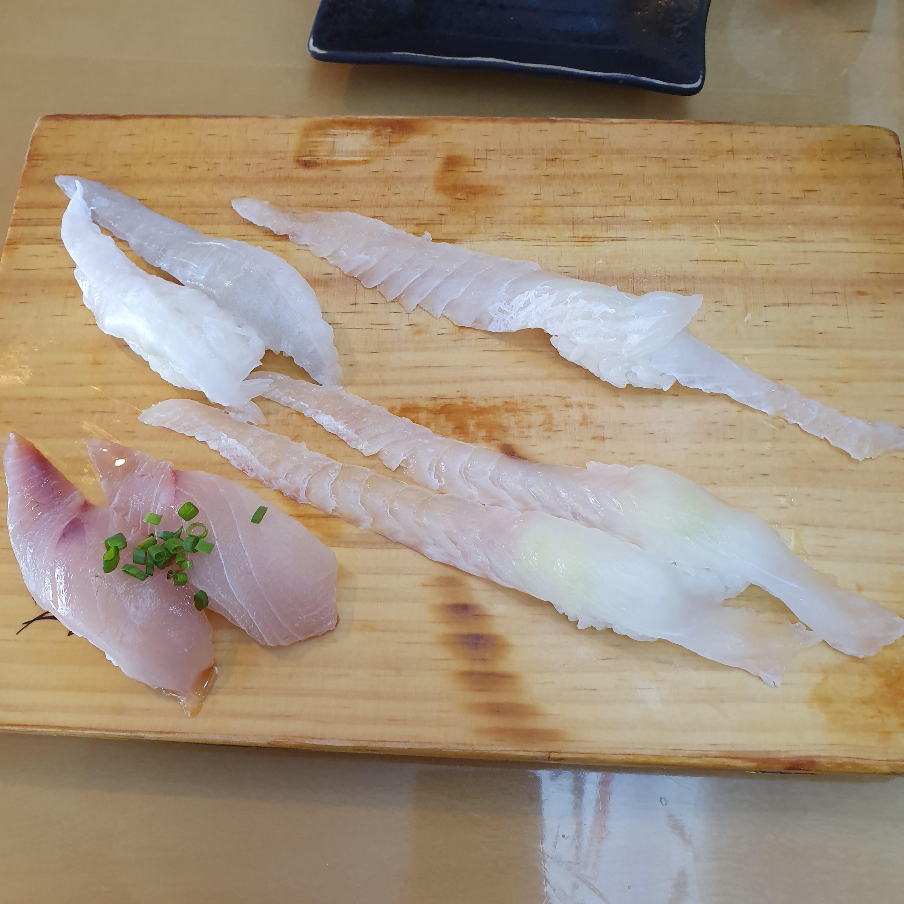 흰살 생선류는 긴꼬리초밥 스타일이다. 생선이 밥보다 더 커서 식감이 훌륭하다. 깔끔하게 4종류의 흰살 생선으로 시작한다.