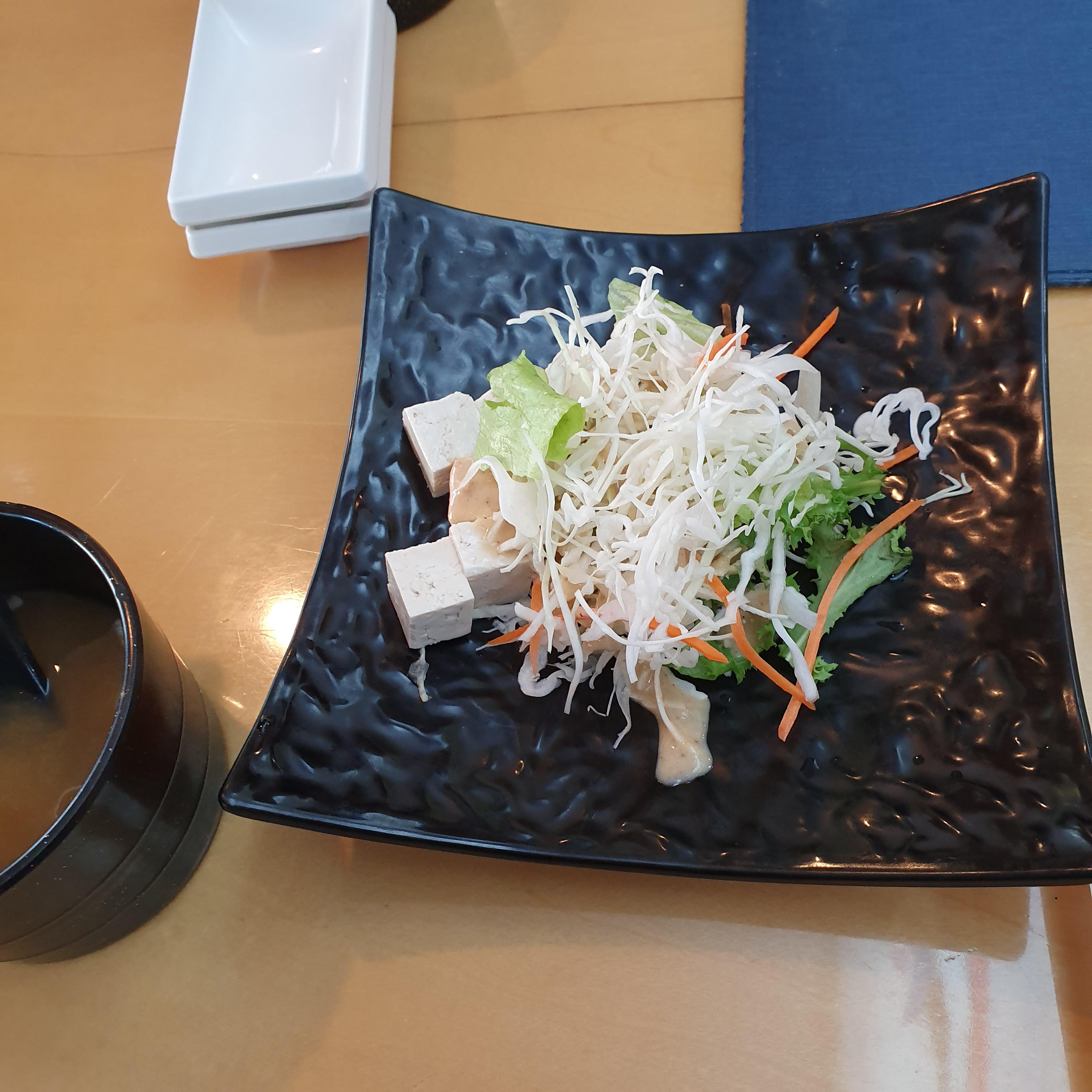 배가 부를까 싶은데 다 먹고나면 배가 상당히 부르다. 세트의 시작은 장국과 두부샐러드다. 스타트로 가볍게 시작한다.