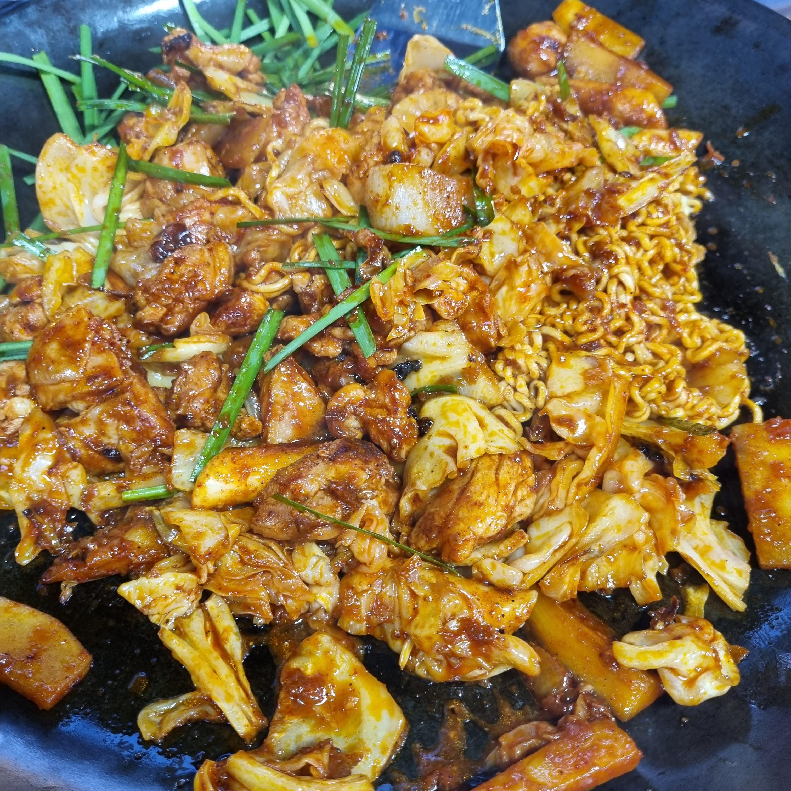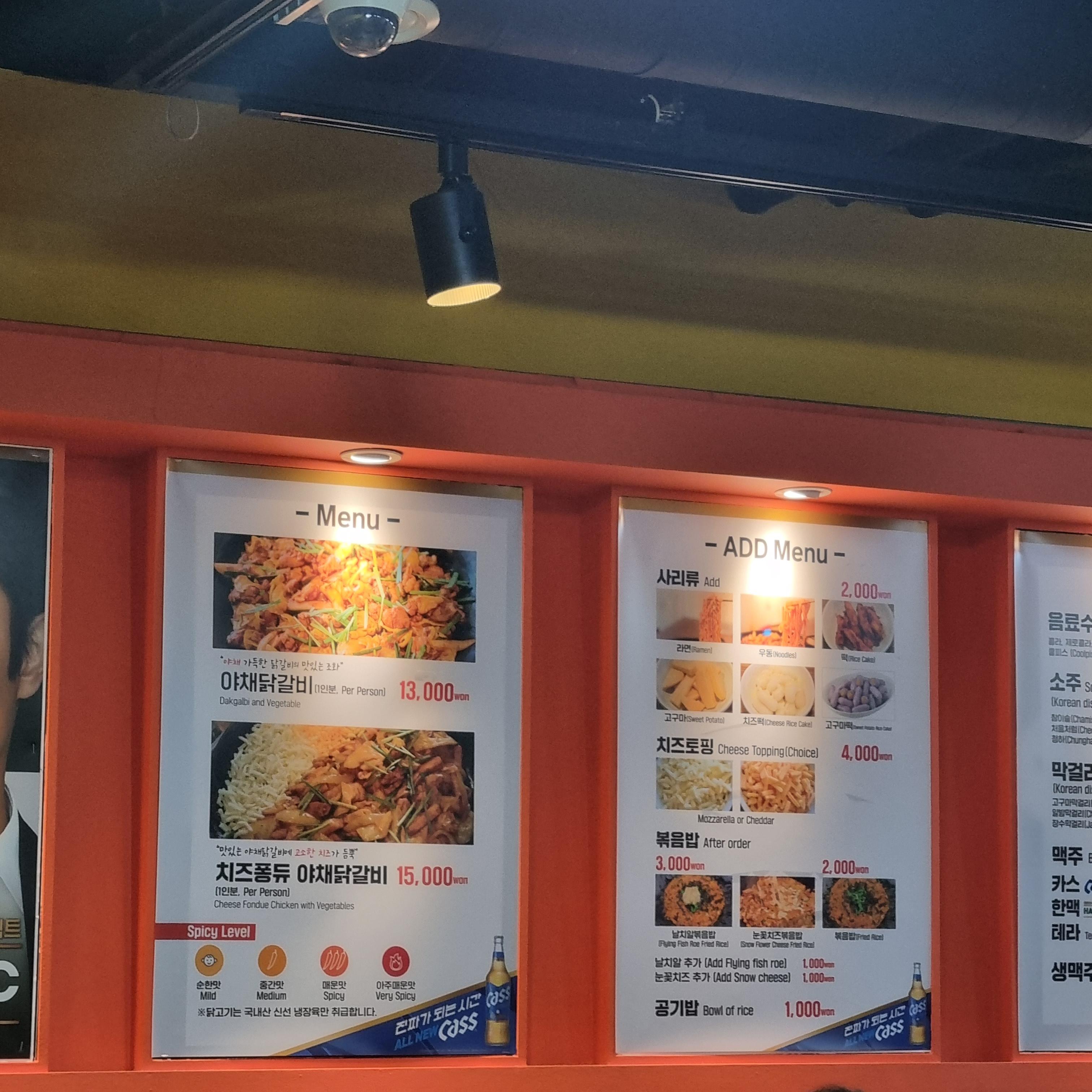 일단 여기가 끌린이유는 우리가 시킨것처럼 라면사리 때문이다. 원래 우리는 닭갈비에는 우동사리를 넣어먹는다. 그런데 여기 라면사리 사진을 보는데 너무 맛있어 보이는거다. 와 이건 꼭 먹어야돼 하고 가자마자 그냥 무조건 야채닭갈비 2인분에 라면사리 하나 추가요 라고 시켰다. 심지어 나중에 우리 옆테이블에서도 오시더니 라면사리를 시키더라.