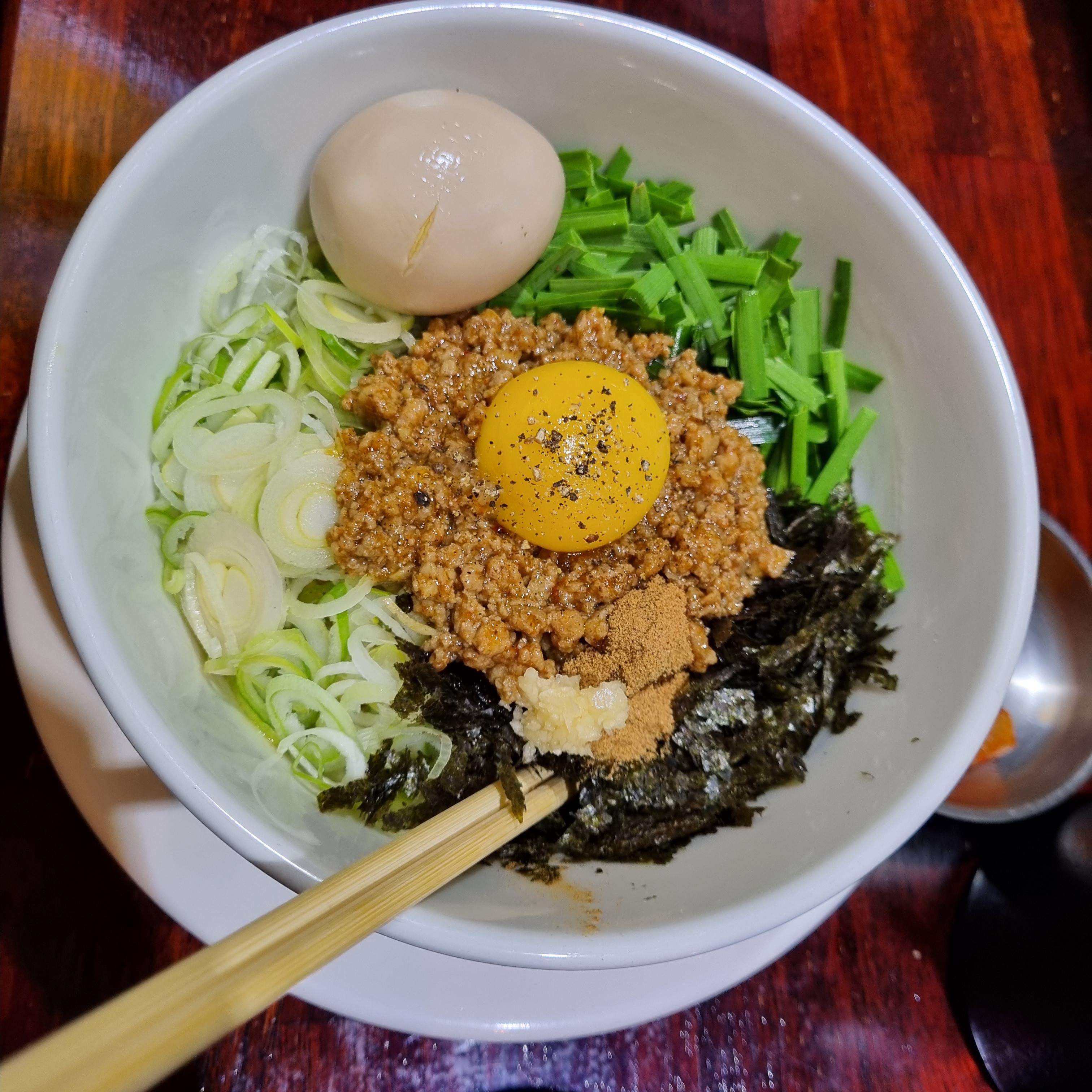 일행이 먹은 마제소바. 만족감이 최상이진 않았지만, 한그릇 뚝딱하더라. 마제소바에 계란을 추가해서 먹었다.