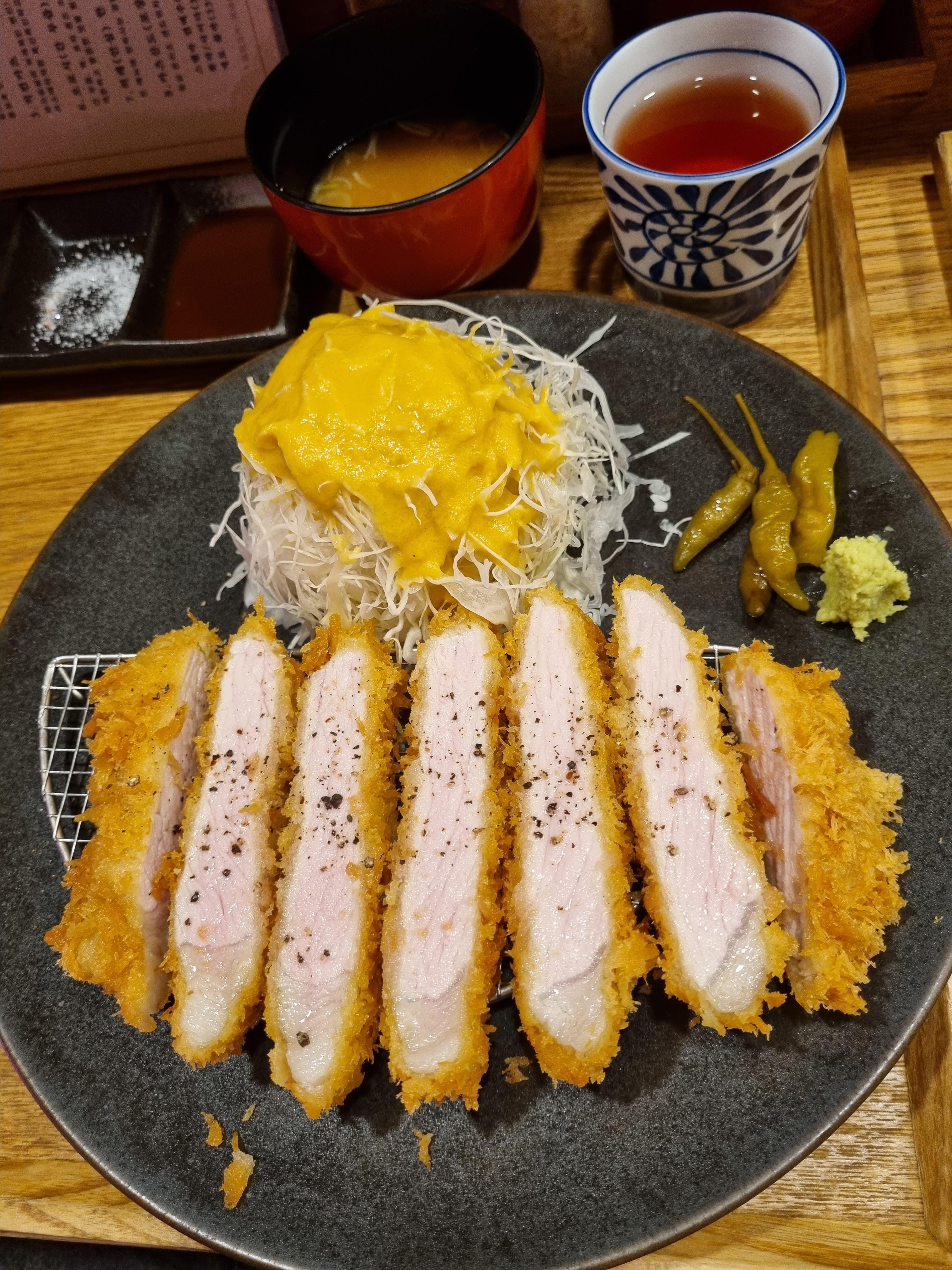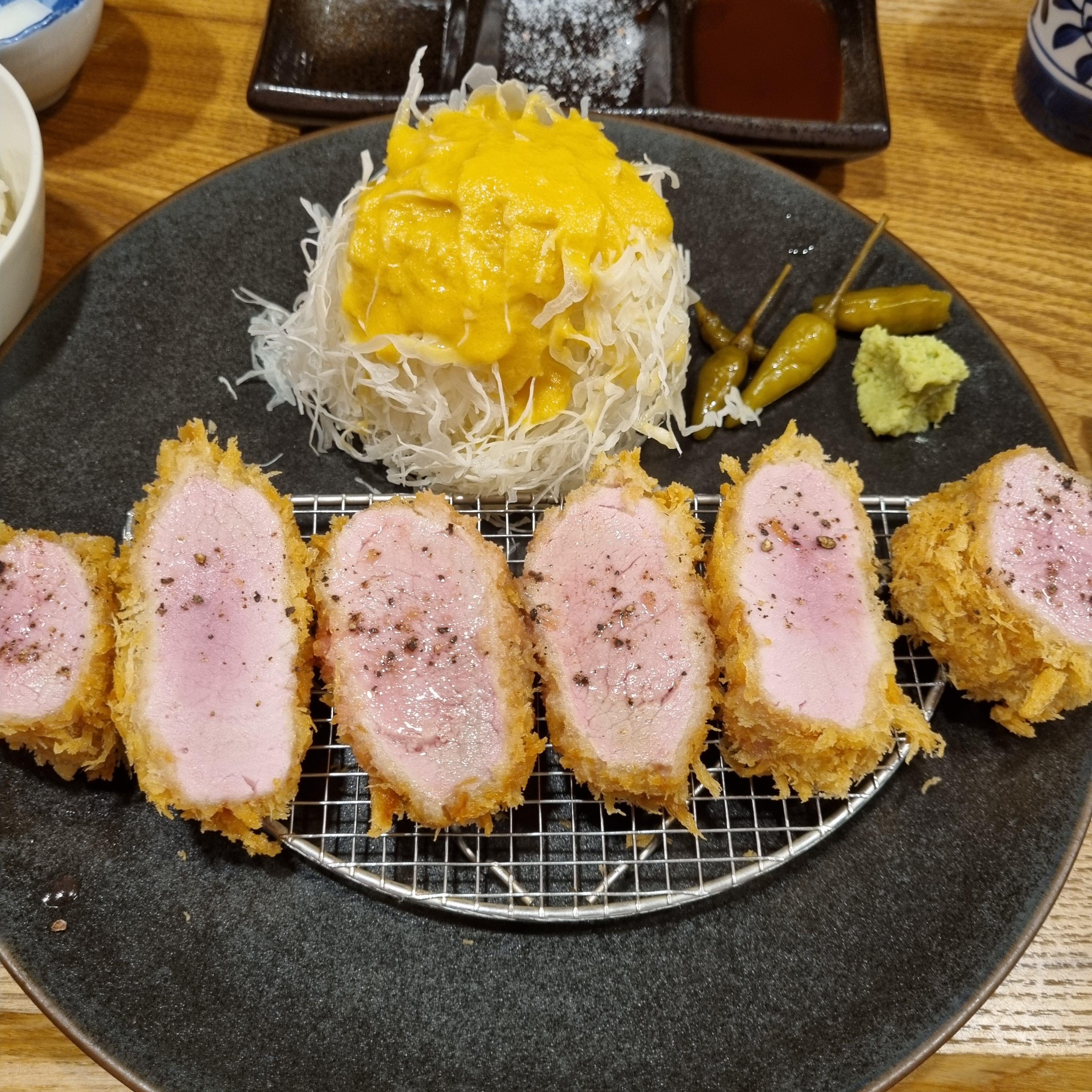 등심은 아래에 비게가 같이 곁들여져 나오는 부위를 사용한다. 개인적으로는 로스는 잘 먹는 편임에도 조금 느끼해서 자꾸 샐러드에 손이 갔는데, 이걸 먹은 일행은 너무 맛있었다고 한다. 우리가 좋아하는 정돈도 맛있지만, 거기보다 더 맛있다고 할 정도.